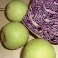 Der Rotkohl und die Äpfel werden schön klein geschnitten oder geraspelt und vermengt.