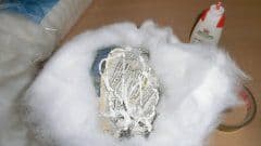 Die Zeitungspapierbällchen werden mit Watte umklebt.