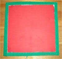 Das Tonkartonquadrat umrandet man mit etwa ein Zentimeter breiten Wellpappestreifen.